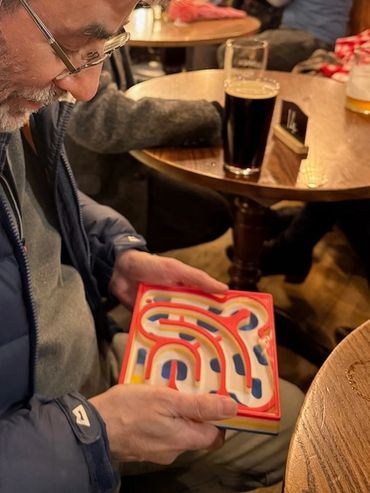 Moving the ball in a circular pattern is probably the most challenging of the 3 maze types.